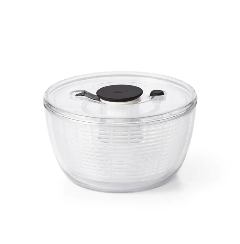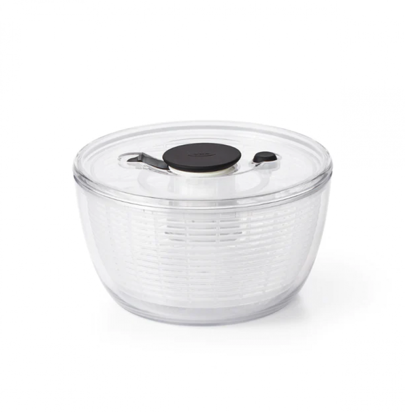 Σουρωτήρι σαλάτας ο πιο γρήγορος και εύκολος τρόπος για να στεγνώσετε τα λαχανικά σας απλώς με το πάτημα ενός κουμπού. Το περιστρεφόμενο καλάθι λειτουργεί και ως μεμονομένο σουρωτήρι, ώστε να μπορείτε να ξεπλύνετε εύκολα το μαρούλι και άλλα. Η αντιολισθητική βάση κραταεί το δοχείο σταθερό στο πάγκο της κουζίνας. Όλα τα μέρη διαχώριζονται για εύκολο καθάρισμα. Πλένεται σε πληντύριο πιάτων. Το ενσωματωμένο κουμπί σταματάει τις περιστροφές.