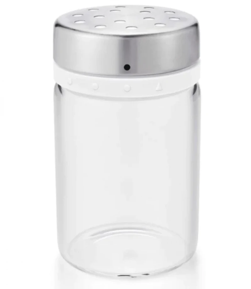 Βαζάκι μπαχαρικών από ανοξείδωτο ατσάλι. Περιστρέφοντας το καπάκι ρυθμίζετε τη ποσότητα με την οποία θέλετε να ρίξετε το περιεχόμενο του όπως μπαχαρικά, κανέλα, ζάχαρη άχνη από την Oxo - Διαστάσεις: 6,47x6,60x11,43εκ.