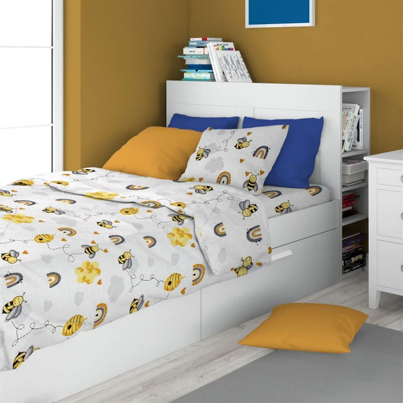Σετ Σεντόνια 3τμχ Βαμβακερά Μονά 160x240εκ. Honey Bee 545 White-Yellow Dimcol