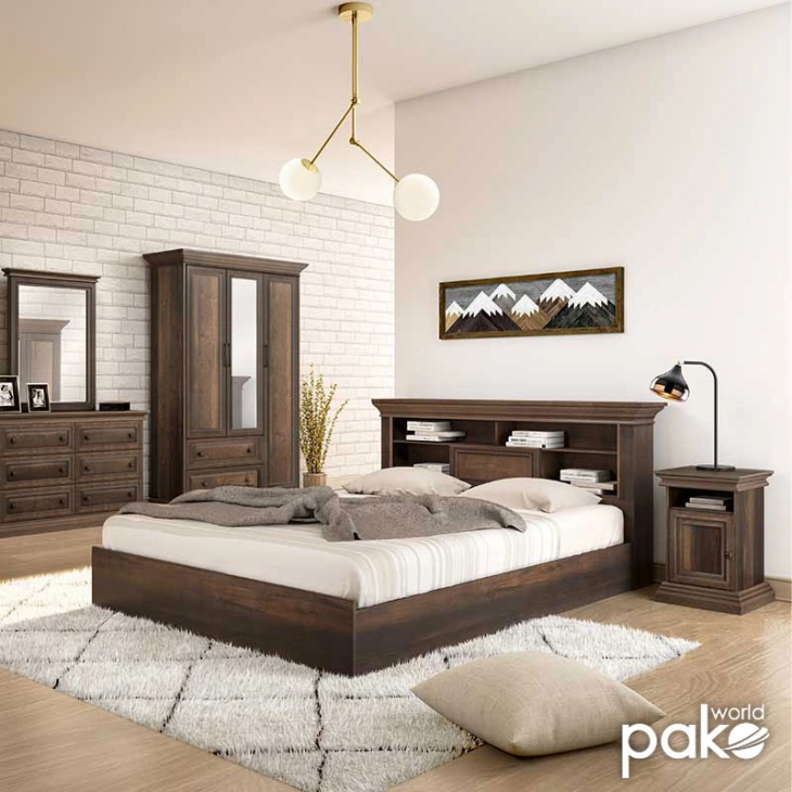 Κρεβάτι διπλό Mozart pakoworld σε χρώμα καρυδί 160x200εκ