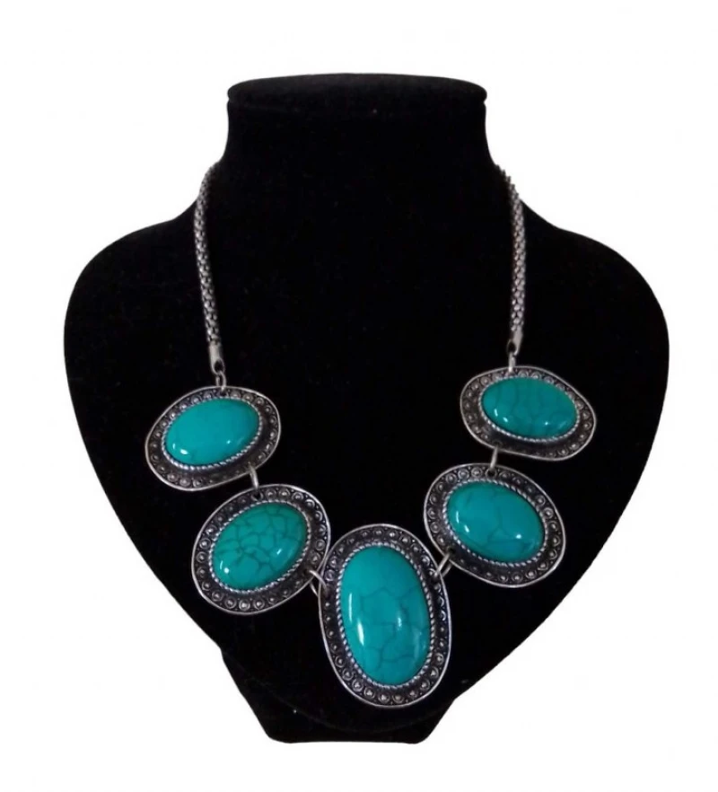 Κολιέ (τύπου αρχαιοελληνικό) μεταλλικό με πέτρες σε τυρκουάζ χρώμα - Διαστάσεις: 50εκ. (ανοιχτό)