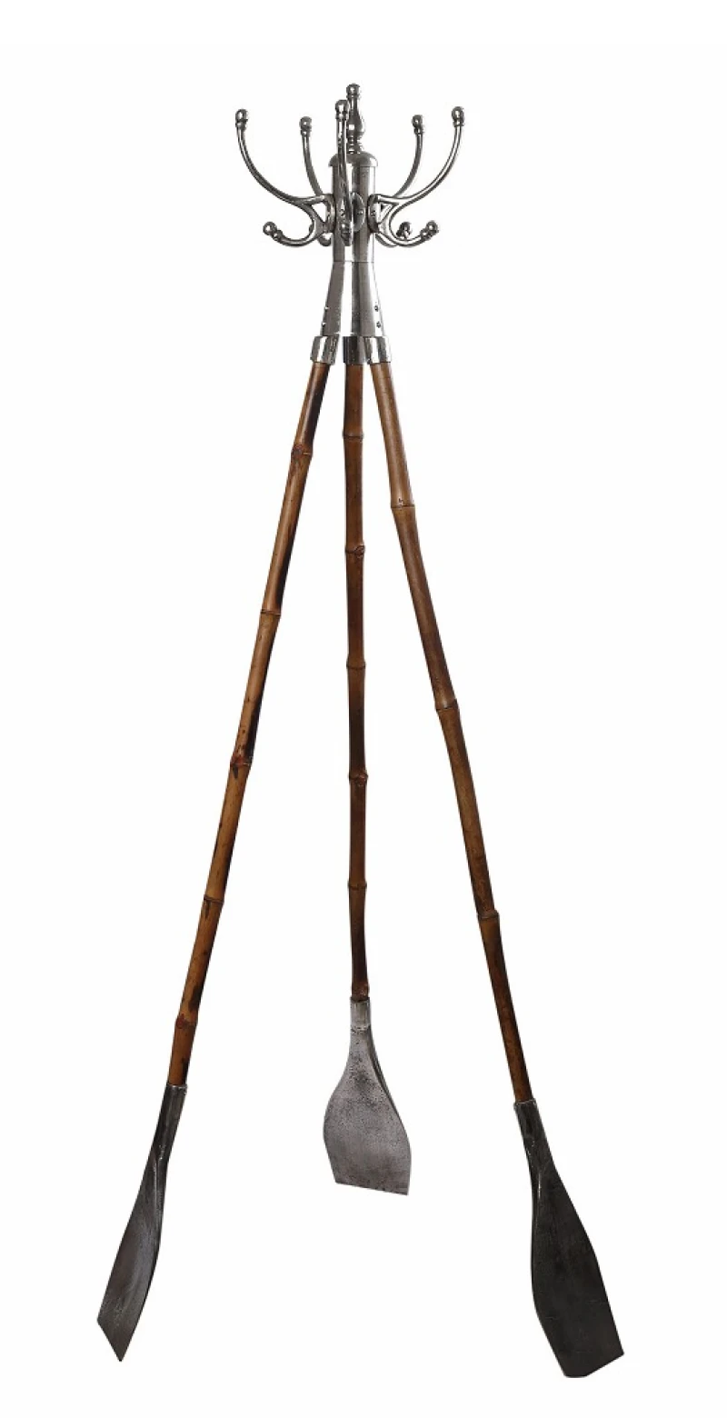Καλόγερος με κουπιά 10 θέσεων αλουμινίου-ξύλινος σε ασημί χρώμα από την ESPIEL - Διαστάσεις: 100x100x200εκ.