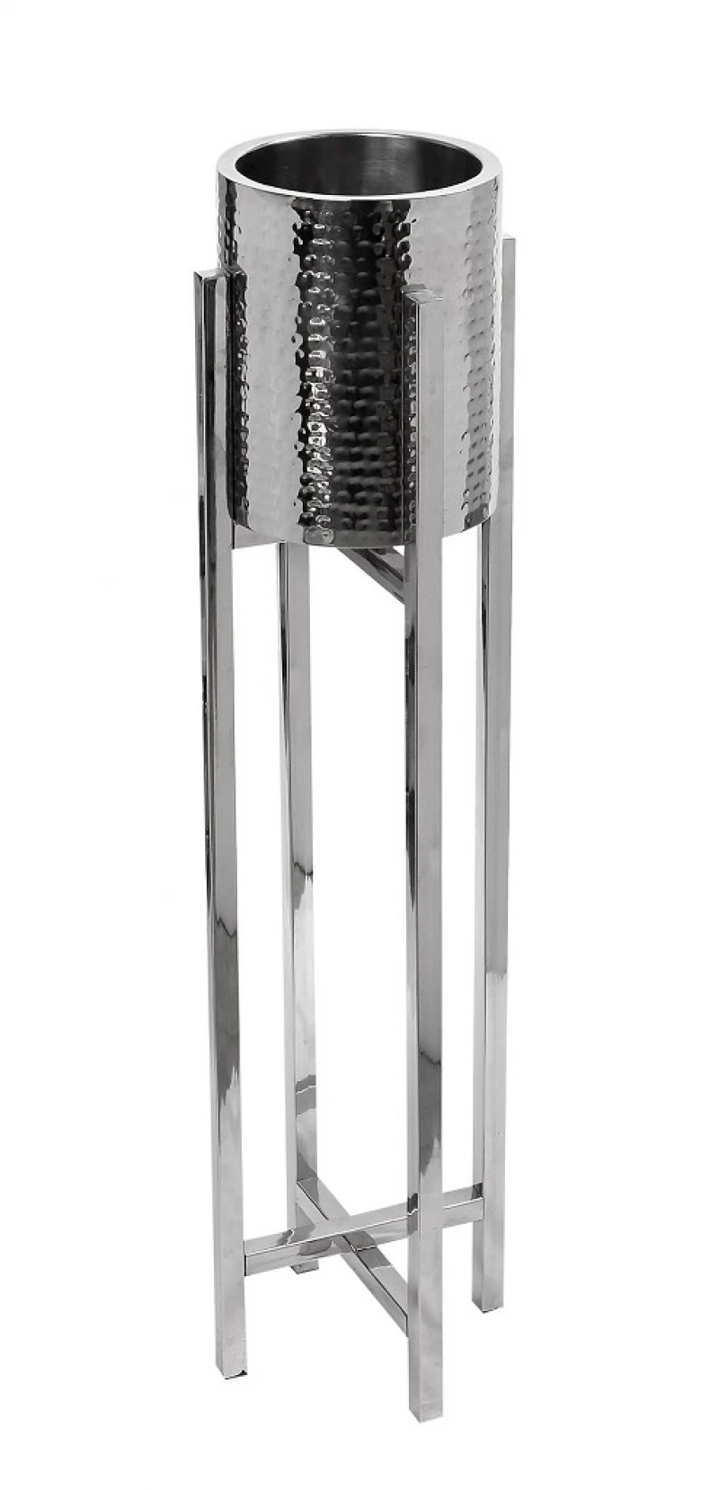 Σαμπανιέρα ανοξείδωτη διπλότοιχη με stand σε ασημί χρώμα από την ESPIEL - Διαστάσεις: 28x28x92εκ.