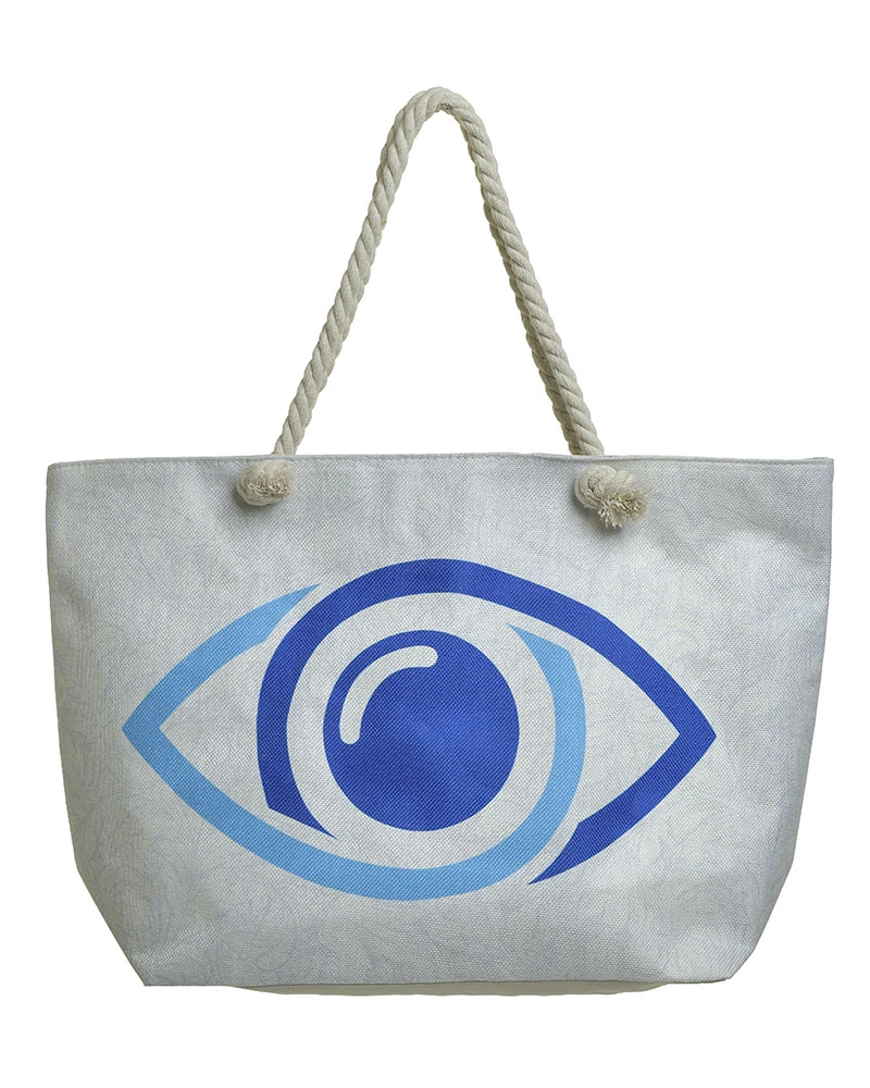 Τσάντα θαλάσσης υφασμάτινη σε λευκή-μπλε χρώμα με σχέδιο μάτι από την ble.