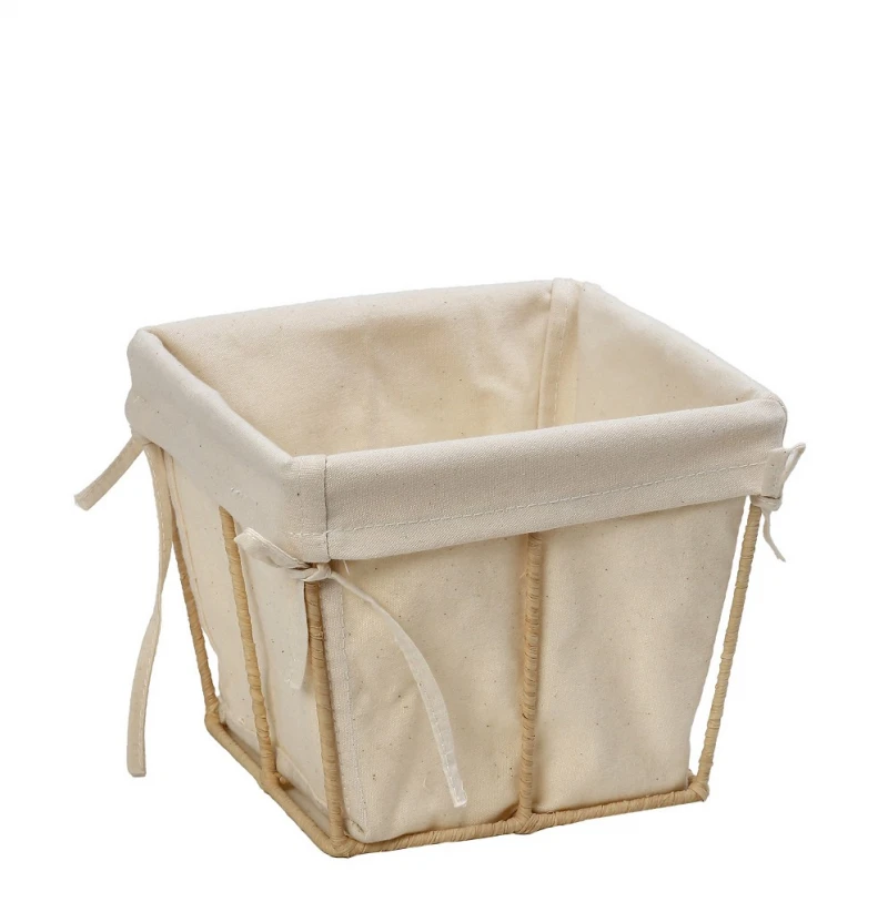 Ψωμιέρα βαμβακερή με ψάθινο stand σε τετράγωνο σχήμα και σε μπεζ χρώμα από την ESPIEL - Διαστάσεις: 15x15x11,5εκ.