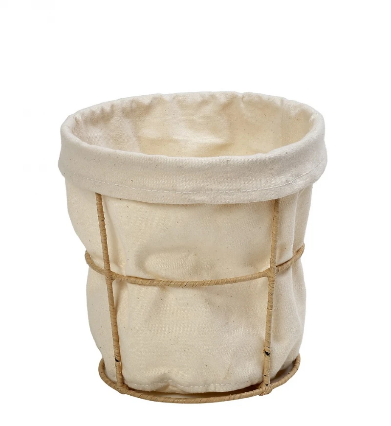 Ψωμιέρα βαμβακερή με ψάθινο stand σε στρογγυλό σχήμα και σε μπεζ χρώμα από την ESPIEL - Διαστάσεις: 15x15x12εκ.