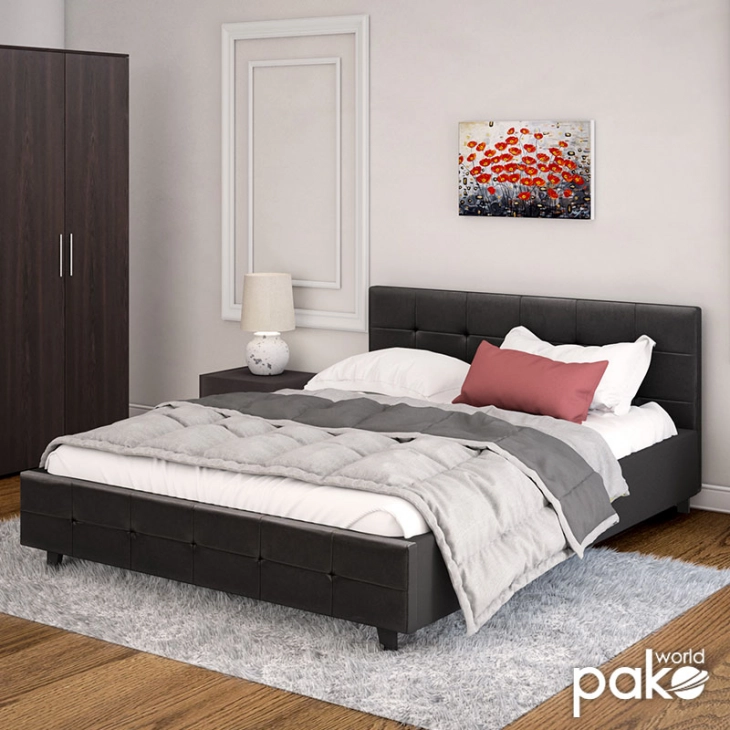 Κρεβάτι Roi pakoworld διπλό 160x200 PU μαύρο ματ + αποθηκευτικό χώρο