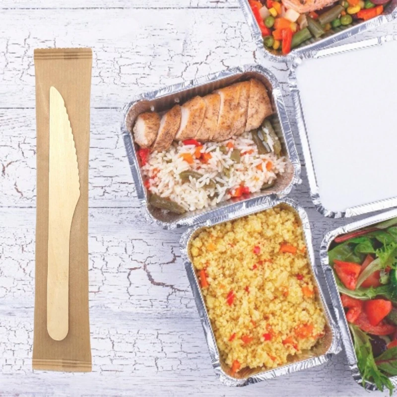 Ξύλινο μαχαίρι μιας χρήσης σε ατομική χάρτινη συσκευασία kraft - 100τεμ