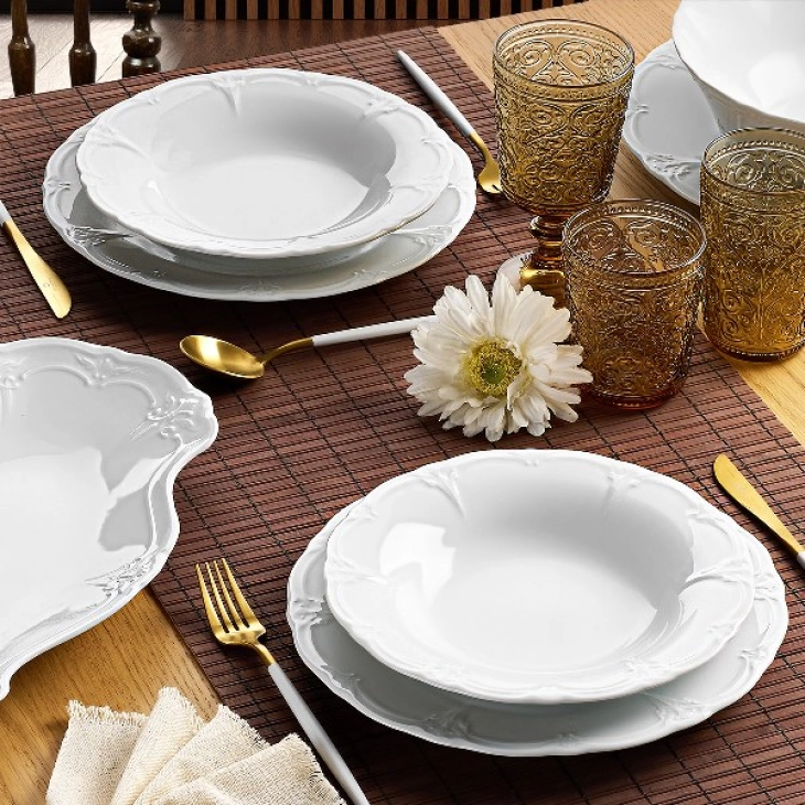 Σερβίτσιο πιάτων 20 τεμαχίων από πορσελάνη σε λευκό χρώμα της σειράς Kaiser από την CRYSPO TRIO. Το σετ περιλαμβάνει: 6 Ρηχά, 6 Βαθιά, 6 Φρούτου, 1 Σαλατιέρα, 1 Πιατέλα.