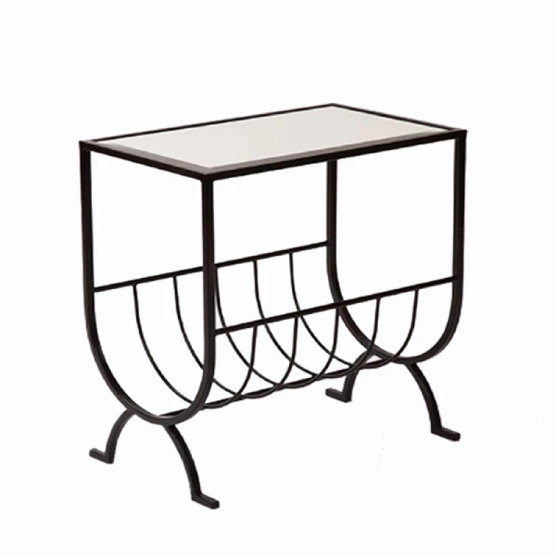 Τραπεζάκι-εφημεριδοθήκη μεταλλικό σε μαύρο χρώμα και με καθρέπτη από την Art Et Lumiere - Διαστάσεις: 48x30x55εκ.