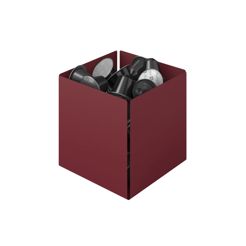 Θήκη για κάψουλες του καφέ, ανοξείδωτο ατσάλι σε μπορντώ ματ χρώμα από την Pam & Co - Διαστάσεις: 13x13x13εκ.