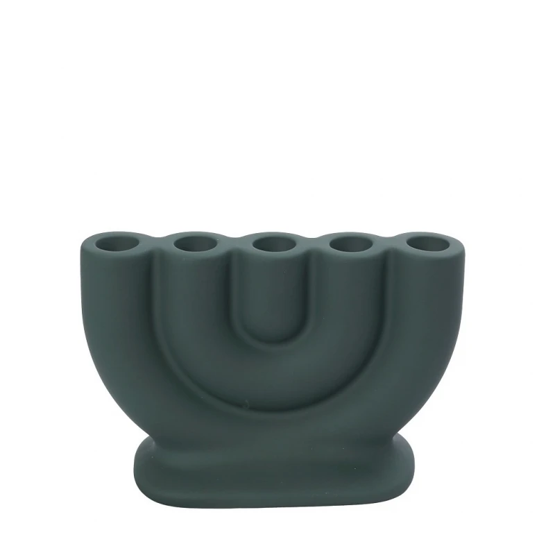 Κηροπήγιο 5 θέσεων κεραμικό σε σκούρο πράσινο χρώμα από την ESPIEL - Διαστάσεις: 20x8,5x13,5εκ.