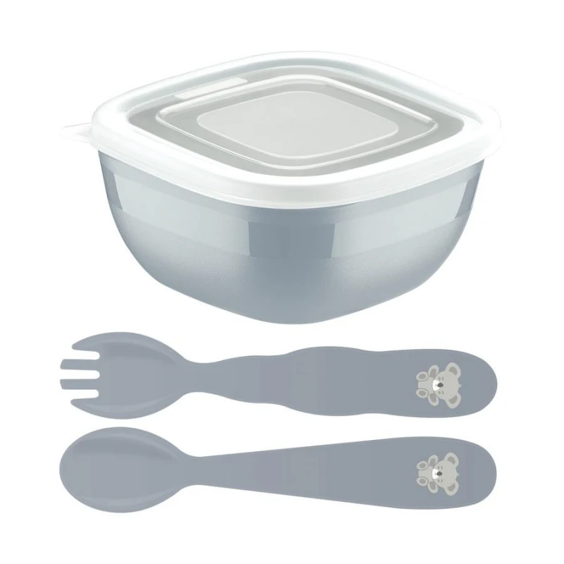 Παιδικό σετ πρωινού 3τμχ πολυπροπυλενίου σε μπλε χρώμα από την Tramontina. Το σετ περιλαμβάνει: 1 δοχείο φαγητού 300ml, 1 παιδικό πηρούνι και 1 παιδικό κουτάλι. *Κατάλληλο για ηλικίες άνω των 6 μηνών.