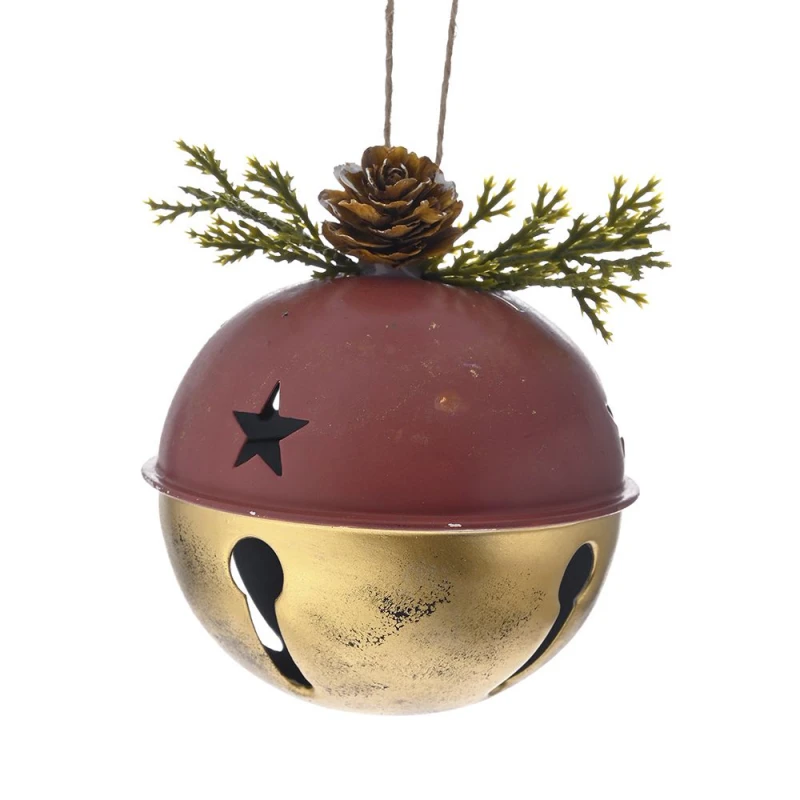 Χριστουγεννιάτικο κρεμαστό στολίδι μεταλλικό κουδούνι σε χρυσό-μπορντώ χρώμα από την iliadis - Διαστάσεις: 8εκ. - Η ελάχιστη ποσότητα αγοράς για αυτό το προϊόν είναι 6τμχ.