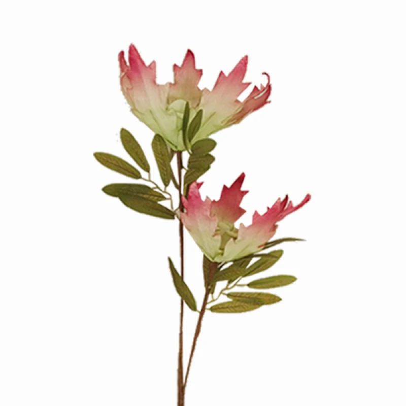 Κλαδί με λουλούδια σε πράσινο-ροζ χρώμα από την Art Et Lumiere - Διαστάσεις: 80εκ. - Η ελάχιστη ποσότητα αγοράς για αυτό το προϊόν είναι 6τμχ.