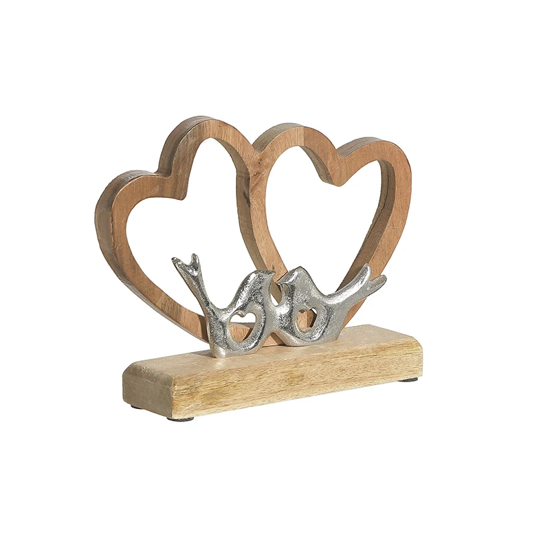 Διακοσμητικές επιτραπέζιες καρδιές ξύλινες-αλουμινίου σε natural-ασημί χρώμα από την inart - Διαστάσεις: 20x5x16εκ.
