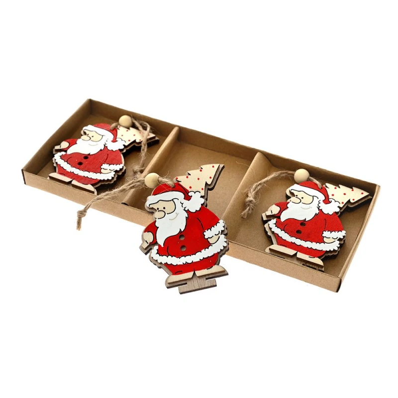 Χριστουγεννιάτικος Άγιος Βασίλης Κρεμαστός Σετ 3τμχ Ξύλινος Κόκκινος 8x22εκ. iliadis 83334