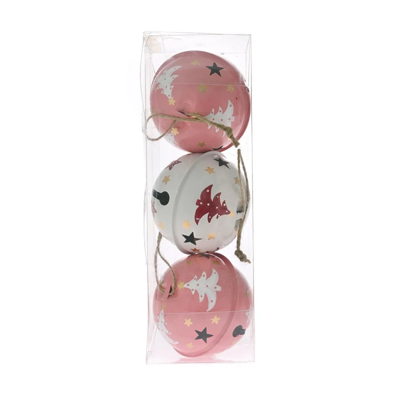 Χριστουγεννιάτικο Κουδούνι Κρεμαστό Σετ 3τμχ Μεταλλικό Λευκό-Ροζ 8εκ. iliadis 83356