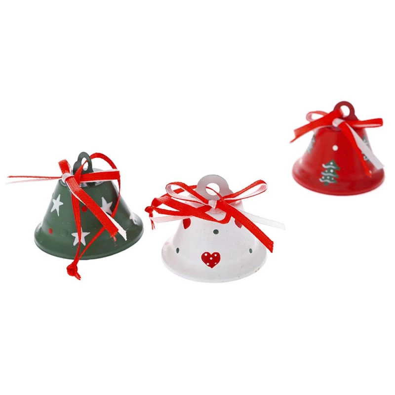 Χριστουγεννιάτικο κρεμαστό στολίδι σετ 3τμχ μεταλλικό κουδούνι σε λευκό-κόκκινο-πράσινο χρώμα από την iliadis - Διαστάσεις: 5εκ. - Η ελάχιστη ποσότητα αγοράς για αυτό το προϊόν είναι 4τμχ.