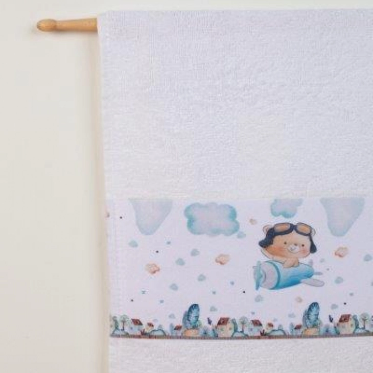Σετ πετσέτες μπεμπέ 2τμχ υψηλής απορροφητικότητας με φάσα και ψηφιακά τυπώμένο χρωματιστό σχέδιο, 100% βαμβακερές 400gsm σε λευκό χρώμα από την DimCol - Το σετ περιλαμβάνει: 1 πετσέτα 30x50εκ. και 1 πετσέτα 70x140εκ.