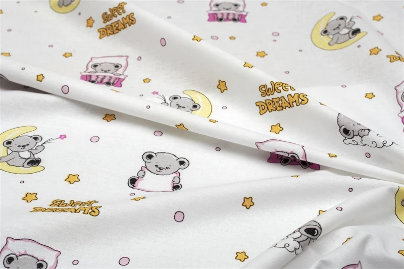 Σεντόνι λίκνου μεμονωμένο 100% βαμβακερό 144 κλωστών σε λευκό-ροζ χρώμα από την DimCol - Διαστάσεις: 80x110εκ.