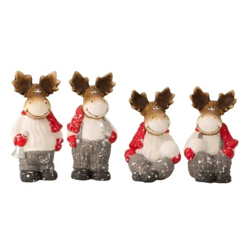 Σετ 4τμχ τάρανδοι πολυεστερικοί σε γκρι-λευκή-κόκκινη απόχρωση από την Royal Art Collection - Διάστασεις: 18εκ.