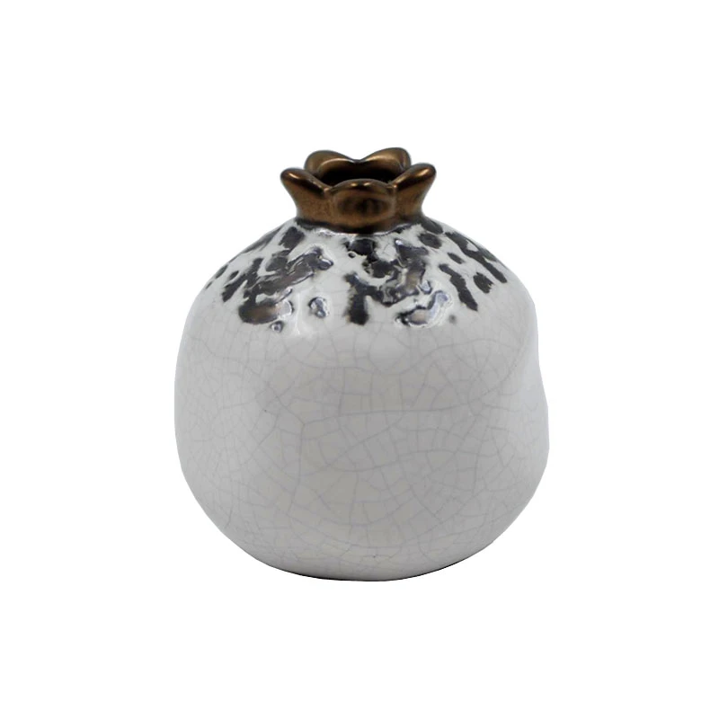 Διακοσμητικό ρόδι κεραμικό σε λευκή απόχρωση κρακελέ με πιτσιλιές στο πάνω μέρος από την Royal Art Collection - Διάστασεις: 9,5εκ.