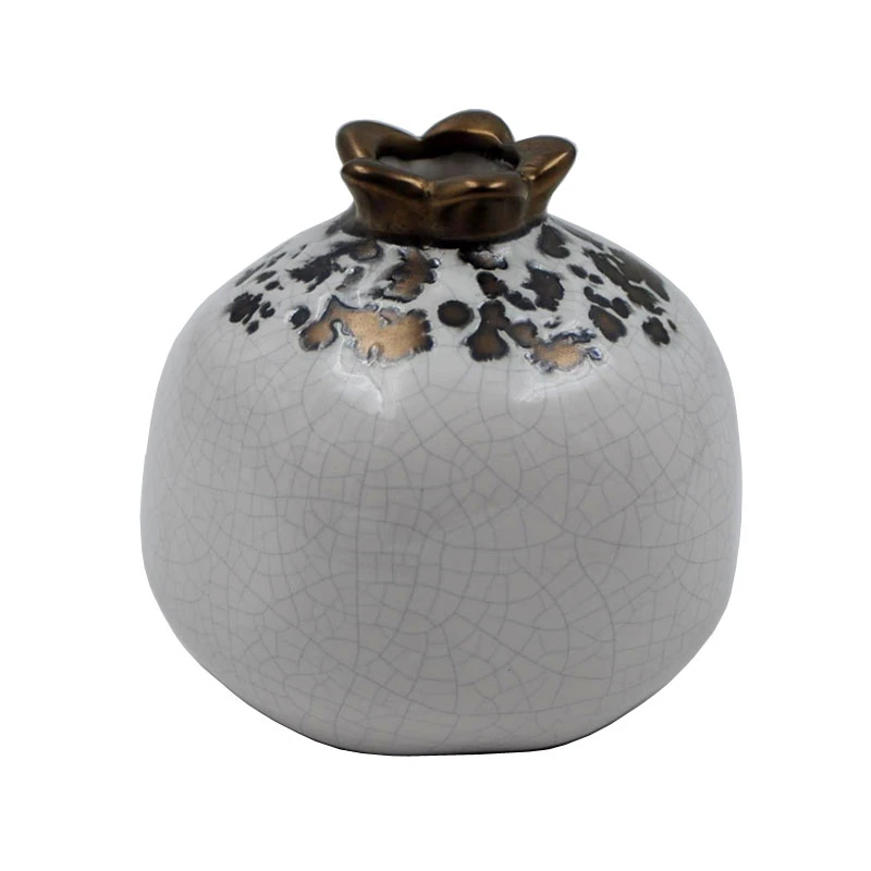 Διακοσμητικό ρόδι κεραμικό σε λευκό χρώμα με τεχνική κρακελέ και πιτσιλιές στο πάνω μέρος από την Royal Art Collection - Διάσταση: 12εκ.