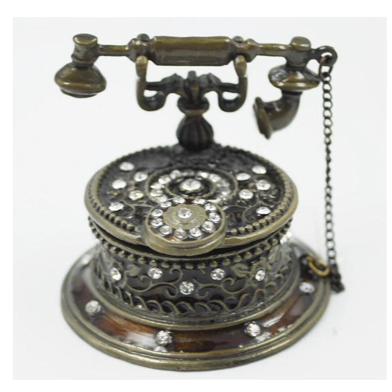 Διακοσμητικό κουτάκι μινιατούρα σε σχήμα τηλέφωνο και σε καφέ χρώμα με σμάλτο και στρας από την Royal Art Collection - Διαστάσεις: 6,5x6x6εκ.