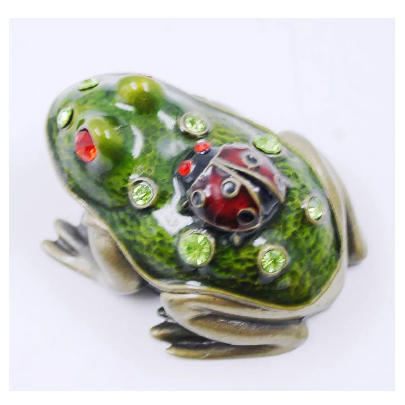 Διακοσμητικό κουτάκι μινιατούρα σε σχήμα βατράχου με πασχαλίτσα και σε πράσινο χρώμα με σμάλτο και στρας από την Royal Art Collection - Διαστάσεις: 5,5x4x3εκ.