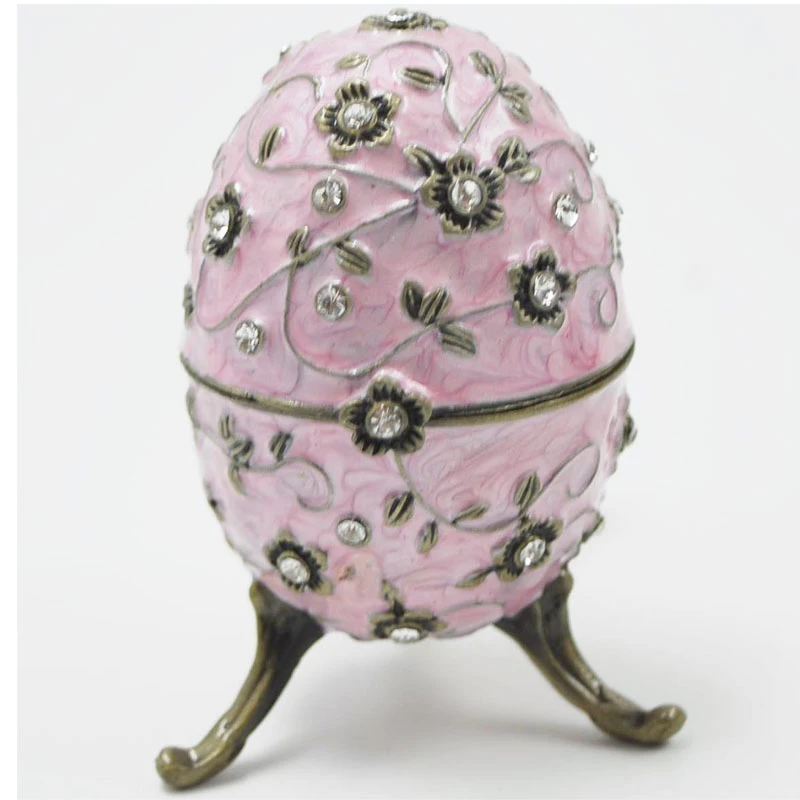 Διακοσμητικό κουτάκι μινιατούρα σε σχήμα αυγού με βάση και σε ροζ χρώμα με σμάλτο και στρας από την Royal Art Collection - Διαστάσεις: 10εκ.