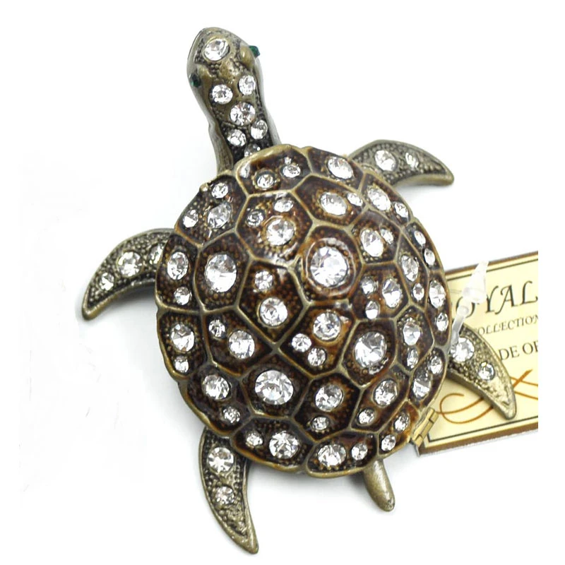 Διακοσμητικό κουτάκι μινιατούρα σε σχήμα χελώνας και σε καφέ χρώμα με σμάλτο και στρας από την Royal Art Collection - Διαστάσεις: 8x7x2,5εκ.