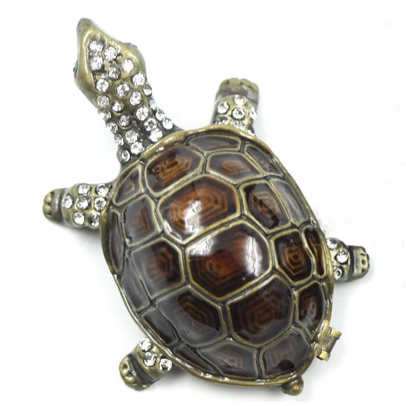 Διακοσμητικό κουτάκι μινιατούρα σε σχήμα χελώνας και σε καφέ χρώμα με σμάλτο και στρας από την Royal Art Collection - Διαστάσεις: 8x4x2εκ.