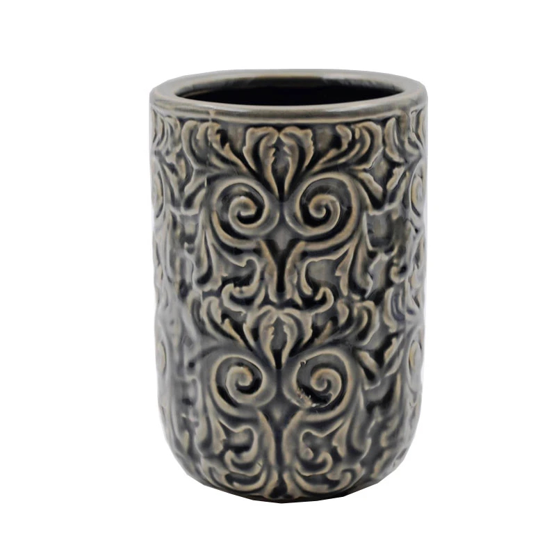 Βάζο κεραμικό σε γκρι χρώμα με ανάγλυφα σχέδια από την Royal Art Collection - Διαστάσεις: 16εκ.