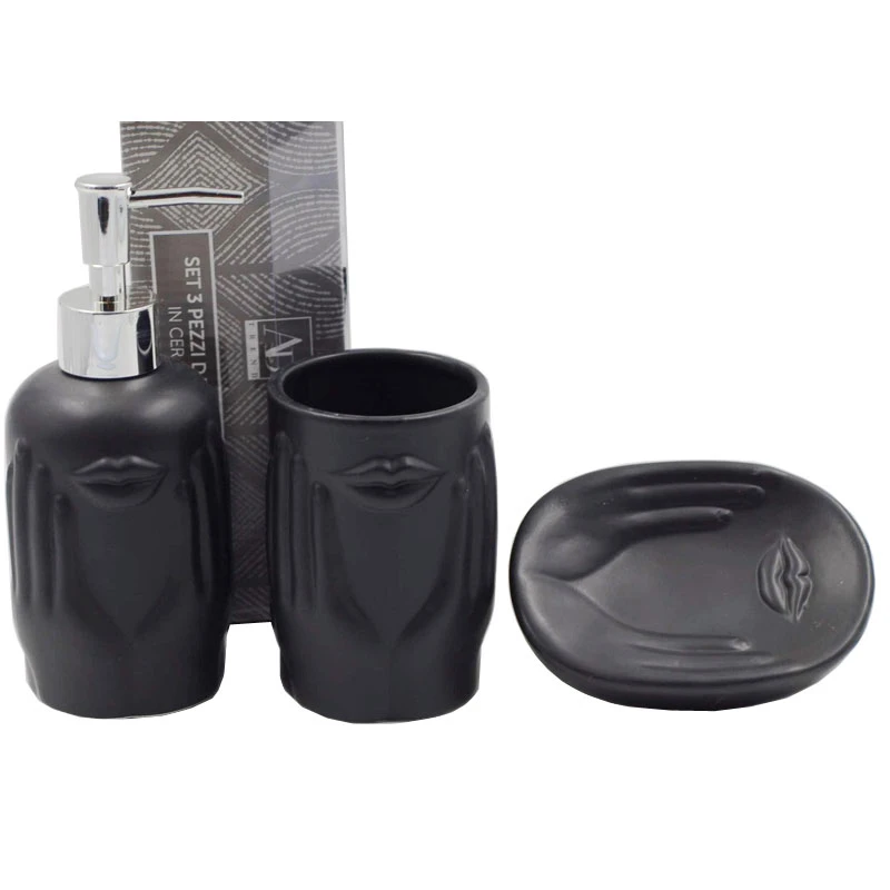 Σετ μπάνιου 3τμχ κεραμικό σε μαύρο χρώμα με ανάγλυφα σχέδια από την Royal Art Collection - Διαστάσεις: 16x12,5εκ.