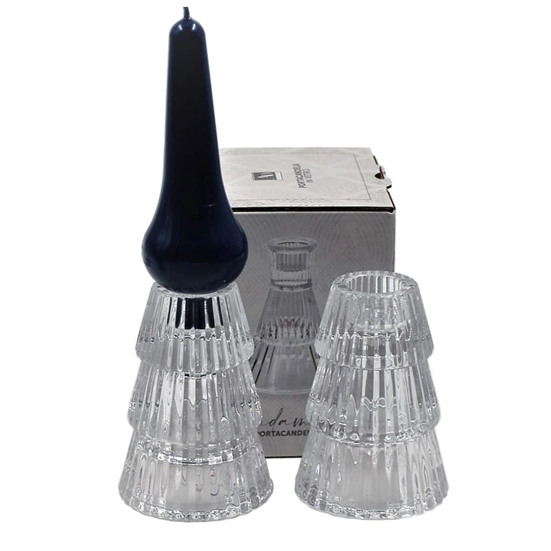 Κηροπήγια σετ 2τμχ γυάλινα, διάφανα με γραμμές από την Royal Art Collection - Διαστάσεις: 6,5x9εκ.