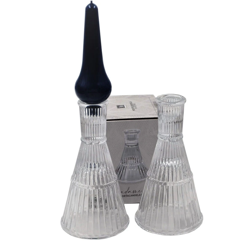 Κηροπήγια σετ 2τμχ γυάλινα, διάφανα με γραμμές από την Royal Art Collection - Διαστάσεις: 8,5x15εκ.