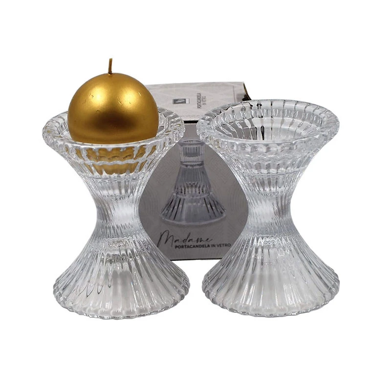 Κηροπήγια σετ 2τμχ γυάλινα, διάφανα με γραμμές από την Royal Art Collection - Διαστάσεις: 10x10,5εκ.