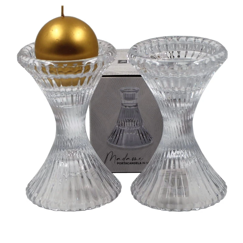 Κηροπήγια σετ 2τμχ γυάλινα, διάφανα με γραμμές από την Royal Art Collection - Διαστάσεις: 10x15,5εκ.