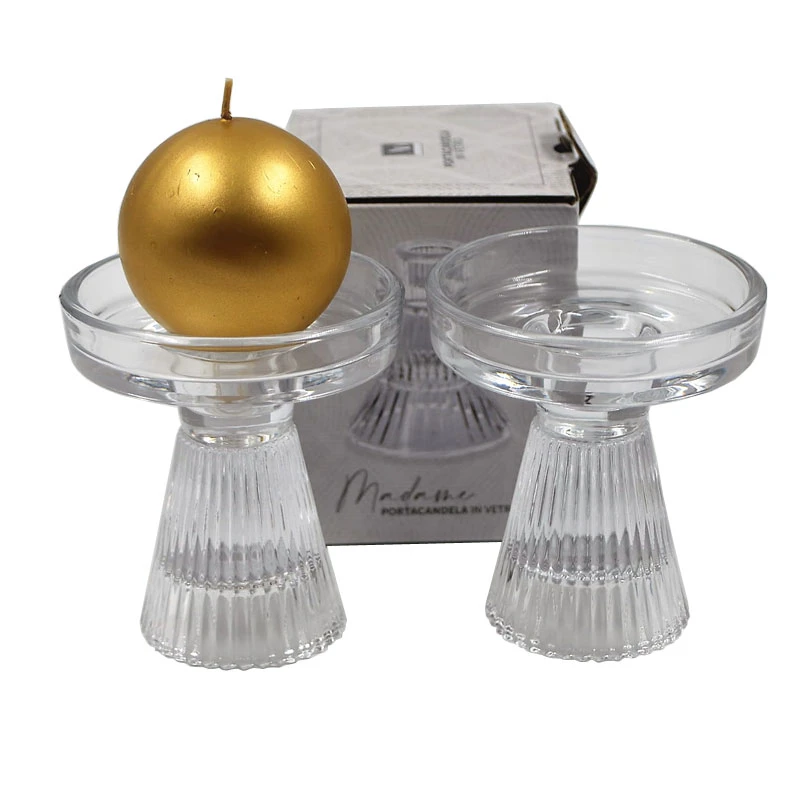 Κηροπήγια σετ 2τμχ γυάλινα, διάφανα με γραμμές από την Royal Art Collection - Διαστάσεις: 10x10,5εκ.