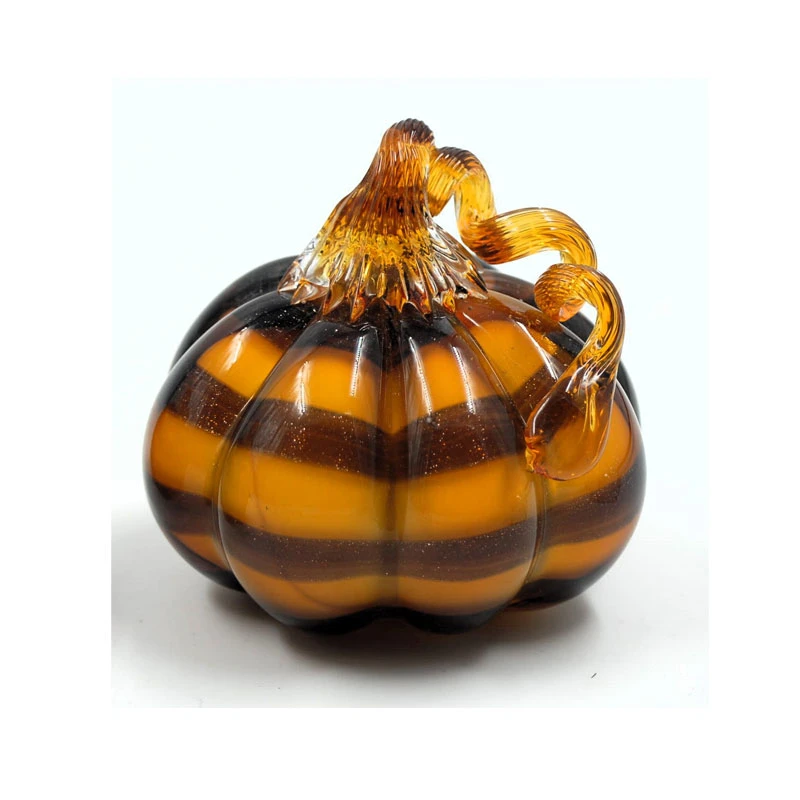 Διακοσμητική κολοκύθα murano γυάλινη σε μελί χρώμα με καφέ γραμμές και κοτσάνι γυριστό από την Royal Art Collection - Διαστάσεις: 10εκ.