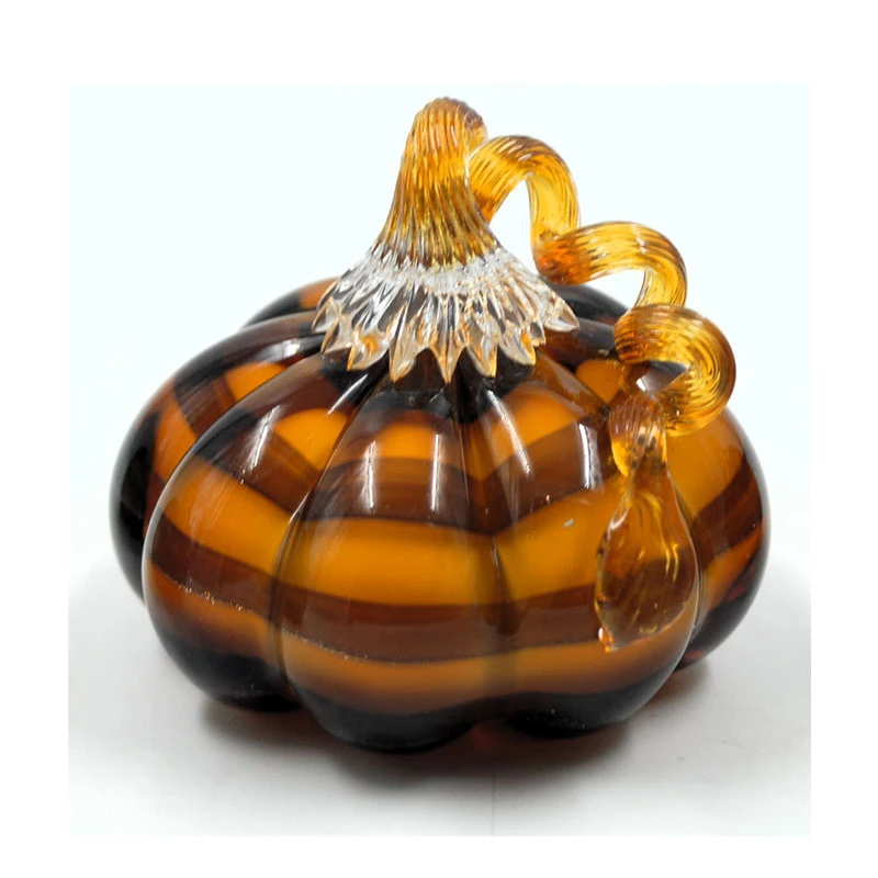 Διακοσμητική κολοκύθα murano γυάλινη σε μελί χρώμα με καφέ γραμμές και κοτσάνι γυριστό από την Royal Art Collection - Διαστάσεις: 11εκ.