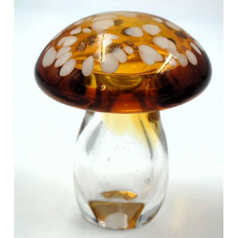 Διακοσμητικό μανιτάρι murano γυάλινο σε μελί χρώμα με λευκά spots από την Royal Art Collection - Διαστάσεις: 10x12εκ.