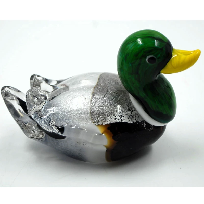 Διακοσμητική πάπια murano γυάλινη σε γκρι χρώμα με πράσινο κεφάλι και κίτρινο ράμφος από την Royal Art Collection - Διαστάσεις: 20εκ.