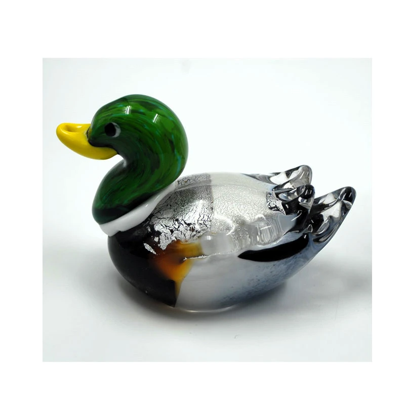 Διακοσμητική πάπια murano γυάλινη σε γκρι χρώμα με πράσινο κεφάλι και κίτρινο ράμφος από την Royal Art Collection - Διαστάσεις: 12εκ.