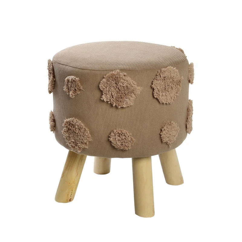 Σκαμπώ chenille με ξύλινη βάση και πόδια σε καφέ χρώμα από την ESPIEL - Διαστάσεις: 35x35x40εκ.