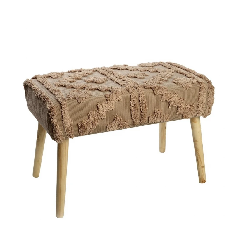 Σκαμπώ-παγκάκι από ύφασμα polyester με ξύλινη βάση και πόδια σε καφέ χρώμα με ανάγλυφα γεωμετρικά σχέδια από την ESPIEL - Διαστάσεις: 66x14x34εκ.