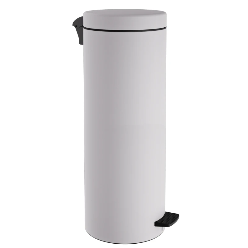 Καλάθι απορριμμάτων 30lt ανοξείδωτο με μηχανισμό soft close σε ματ λευκό χρώμα από την Pam & Co - Διαστάσεις: Φ25x65εκ. (Περιέχει αποσπώμενο εσωτερικό κάδο)