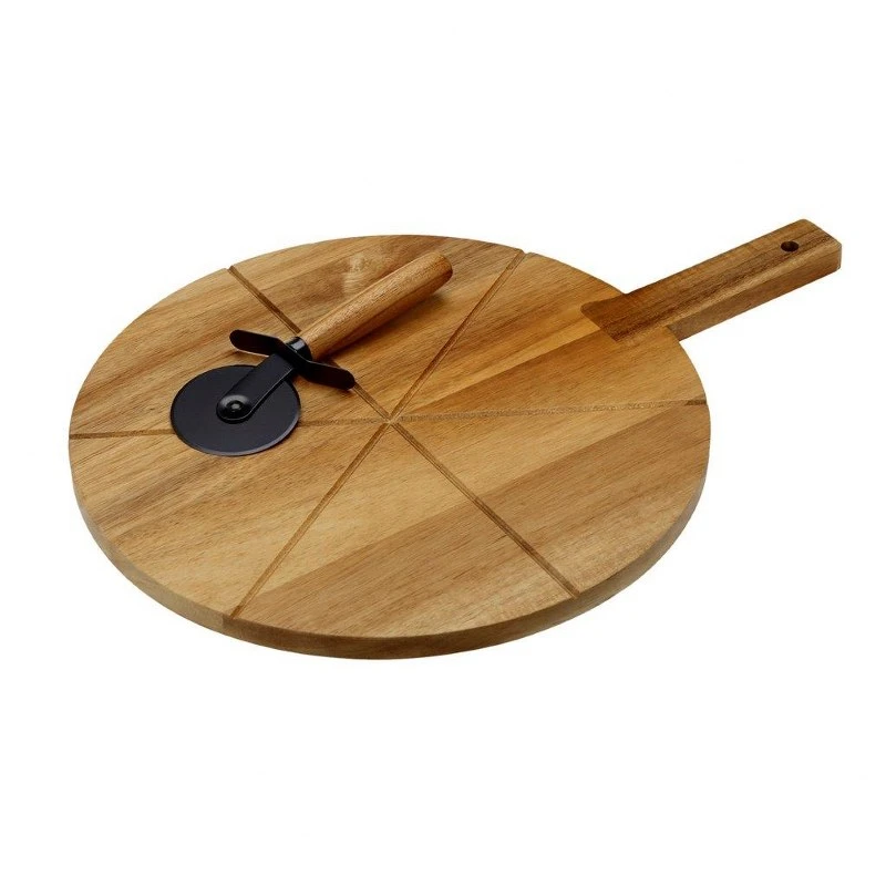 Σετ Πλατώ Σερβιρίσματος Πίτσας Με Ρόδα Κοπής Ξύλινο Ακακίας 45x32εκ. Soul Kitchen CRYSPO TRIO 01.00.210