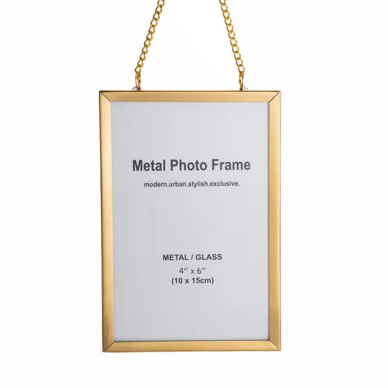 Κορνίζα κρεμαστή μεταλλική με αλυσίδα σε χρυσό χρώμα από την από την iliadis - Διαστάσεις φωτογραφίας: 10x15εκ.